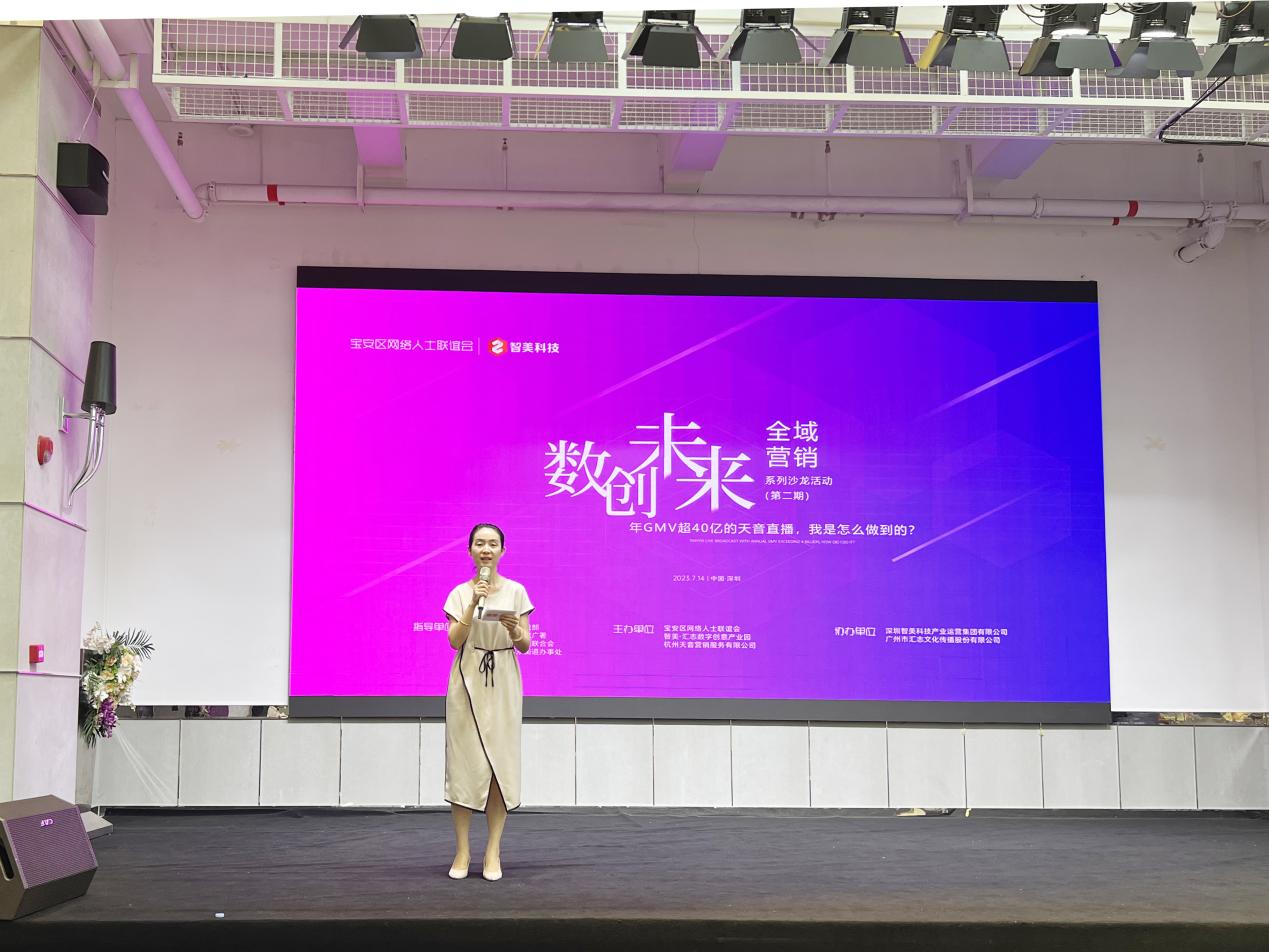 為了更好地助力品牌商家在直播電商營銷新環境中快速破圈,7月14日下午,由深圳市寶安區委統戰部、深圳市寶安區投資推廣署、深圳市寶安區工商業聯合會、深圳市寶安區福永街道辦事處指導,寶安區網絡人士聯誼會、智美·匯志、杭州天音營銷服務有限公司聯合主辦的“數創未來,全域營銷——年GMV超40億的天音直播,我是怎么做到的?”主題沙龍會議在智美·匯志產業園圓滿召開。